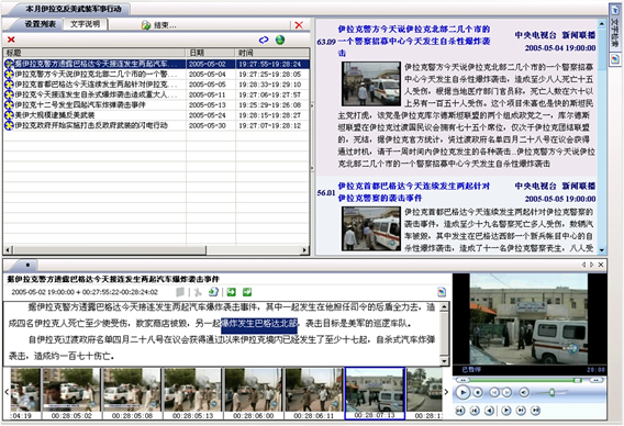 多媒体数据特别是视频数据以其丰富、直观而具体的信息表达形式成为最重要的信息载体,为人类传承着大量的信息和知识。以新闻视频为代表的多媒体情报将在政治、经济、军事和生活中大量涌现并发挥着越来越重要的作用。因此研究如何有效地管理大量的新闻视频数据,并从中挖掘出人们感兴趣的、有价值的潜在知识、模式和趋势已成为一个亟待解决的问题。